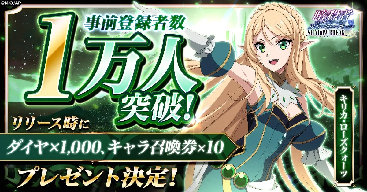 CTW株式会社がリリース予定の新作放置RPG『暗殺者である俺のステータスが勇者よりも明らかに強いのだが シャドウブレイク』が、事前登録者数1万人を突破しました。このゲームは、異世界に召喚された主人公「織田晶」が、彼の圧倒的なステータスを駆使して仲間と共に冒険し、壮大な物語を紡いでいくファンタジーRPGです。