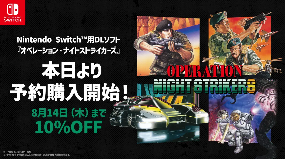 タイトーから2025年8月7日(木)にNintendo Switch用の新作シューティングゲーム『オペレーション・ナイトストライカーズ』の発売が予定されています。この度、同作の予約購入が本日よりニンテンドーeショップで開始され、早期購入特典として10%の割引が適用されることが発表されました。
