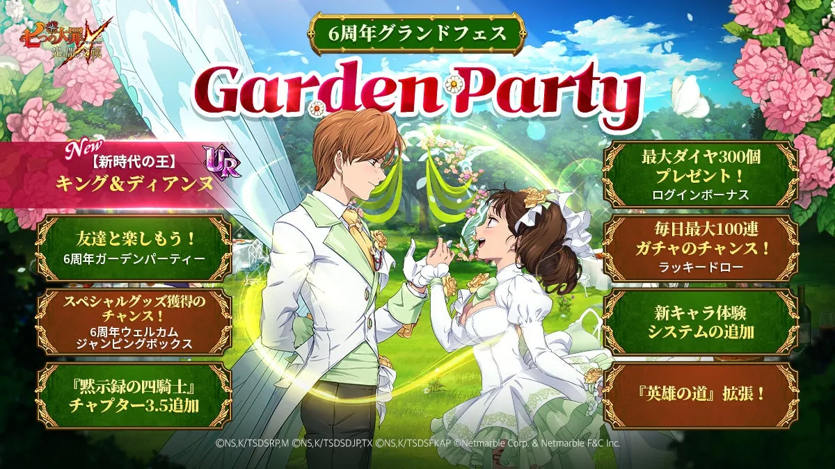 スマートフォン向けのシネマティックアドベンチャーRPG『七つの大罪 ~光と闇の交戦(グラクロ)』が、2023年6月4日のサービス開始6周年を迎えます。この特別な記念日に合わせて、ネットマーブルは「6周年グランドフェスアップデート」を実施し、豪華なイベント「ガーデンパーティー」を開始しました。