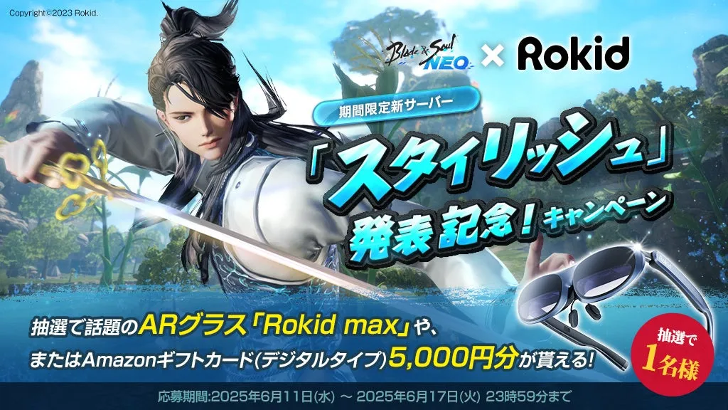 2025年6月11日から17日まで、エヌ・シー・ジャパンが手掛けるPCオンラインゲーム『ブレイドアンドソウルNEO』にて、期間限定新サーバー「スタイリッシュ」の発表を祝う特別なキャンペーンが開催されています。このキャンペーンは、ARグラスメーカーの『Rokid』とのコラボレーションにより実現しました。