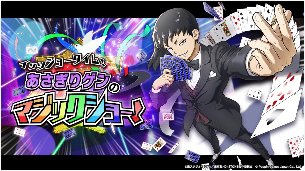 ポッピンゲームズジャパン株式会社は、スマートフォン向けゲーム『Dr.STONE バトルクラフト』において、新たな復刻イベント「イッツショータイム!あさぎりゲンのマジックショー」を開催することを発表しました。このイベントは、2022年6月13日(金)18:00から6月24日(火)13:59までの期間限定で実施され、プレイヤーが楽しむことができる特別な機会です。