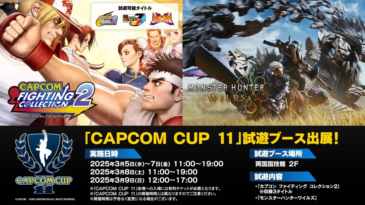 2025年3月5日から9日まで、両国国技館で開催される「CAPCOM CUP 11」。この大会は「ストリートファイター」シリーズの最高峰の戦いを決める場であり、そんなアツいイベントに新作ゲームの試遊が登場します。今回は『カプコン ファイティング コレクション2』と『モンスターハンターワイルズ』、2つの話題作を体験できるチャンスです。