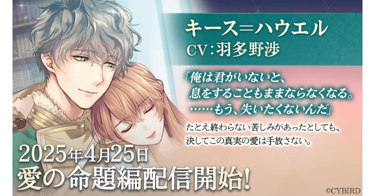 2025年4月25日、大人気恋愛ゲーム『イケメン王子 美女と野獣の最後の恋』に新たな展開が登場します。「キース=ハウエル」こと羽多野渉さんが声を担当する愛の命題編が配信開始されました。この新しいストーリーは、彼のもう一つの人格を持つ王子が、真実の愛によって救われる姿を描いています。