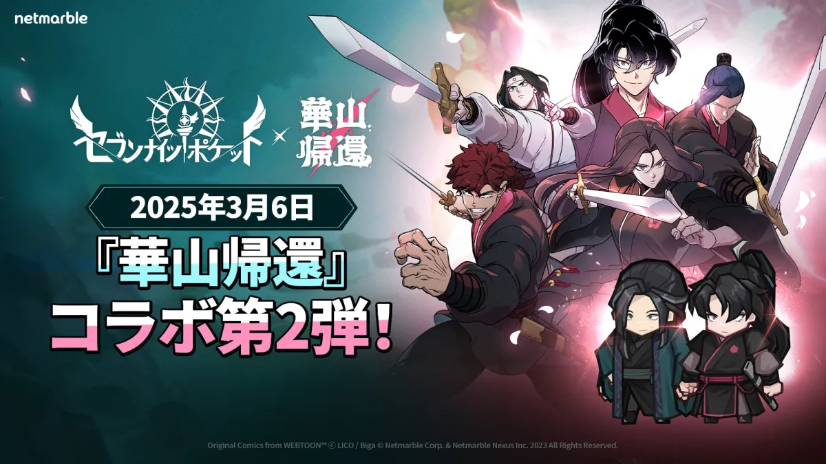 ネットマーブルが手がける新作放置系RPG『セブンナイツ ポケット』(以下、セナポケ)が、2023年3月6日(木)にウェブトゥーン『華山帰還』とのシーズン2コラボアップデートを実施しました。本コラボでは、人気キャラクターたちの新たなレジェンドヒーローとしての登場が楽しめます。