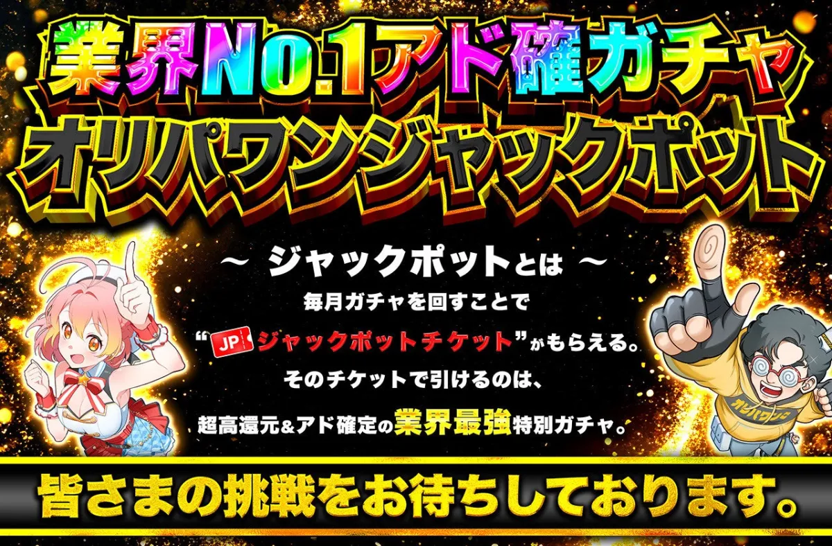 特に注目すべきは、9月1日(月)に開催される「オリパワンジャックポット」です。このジャックポットガチャは、超高還元率とアド確定仕様が特徴で、参加者にとってはまさに夢のような体験を提供します。