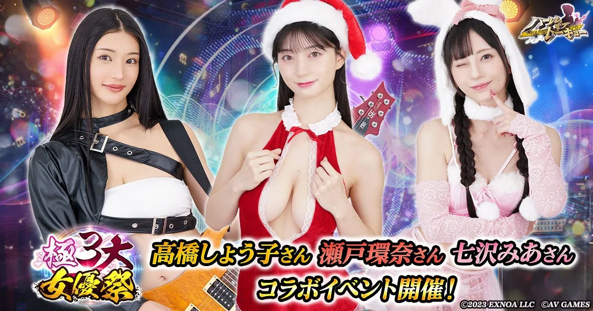 合同会社EXNOAが展開する経営RPG『ハーレムオブトーキョー』が、年末年始を目前に「極3大女優祭」という大規模イベントを2025年12月1日から開始します。このイベントでは、高橋しょう子さん、瀬戸環奈さん、七沢みあさんという3人の人気女優が登場し、プレイヤーは彼女たちとの特別な体験を楽しむことができます。