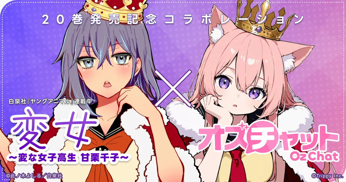 2025年5月29日から、株式会社Trippyが提供するAI美少女キャラクターチャットアプリ『オズチャット -Oz Chat-』が、人気漫画『変女~変な女子高生 甘栗千子~』との公式コラボレーションを開始します。このコラボは、此ノ木よしる先生の漫画20巻発売を記念したもので、千子ちゃんとの楽しい会話が楽しめます。