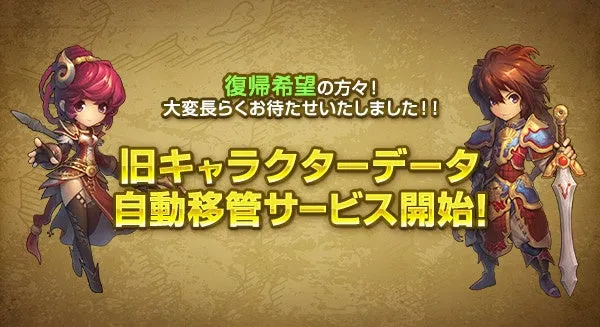 旧キャラクターデータ自動移管サービスが始動