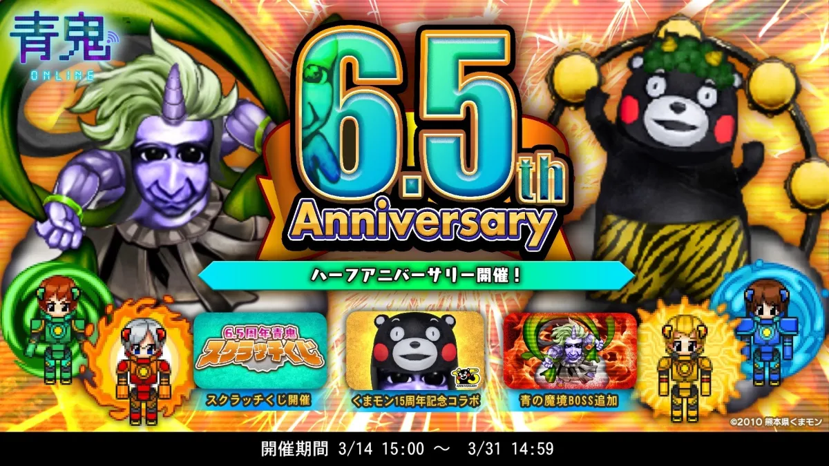 スマートフォン向けゲーム「青鬼オンライン」が、2025年3月13日(木)に6.5周年を迎えることを記念して、3月14日(金)15:00から盛大なアニバーサリーイベントが開催されます。豪華商品が手に入るチャンスが満載のこのイベントの詳細をご紹介します。