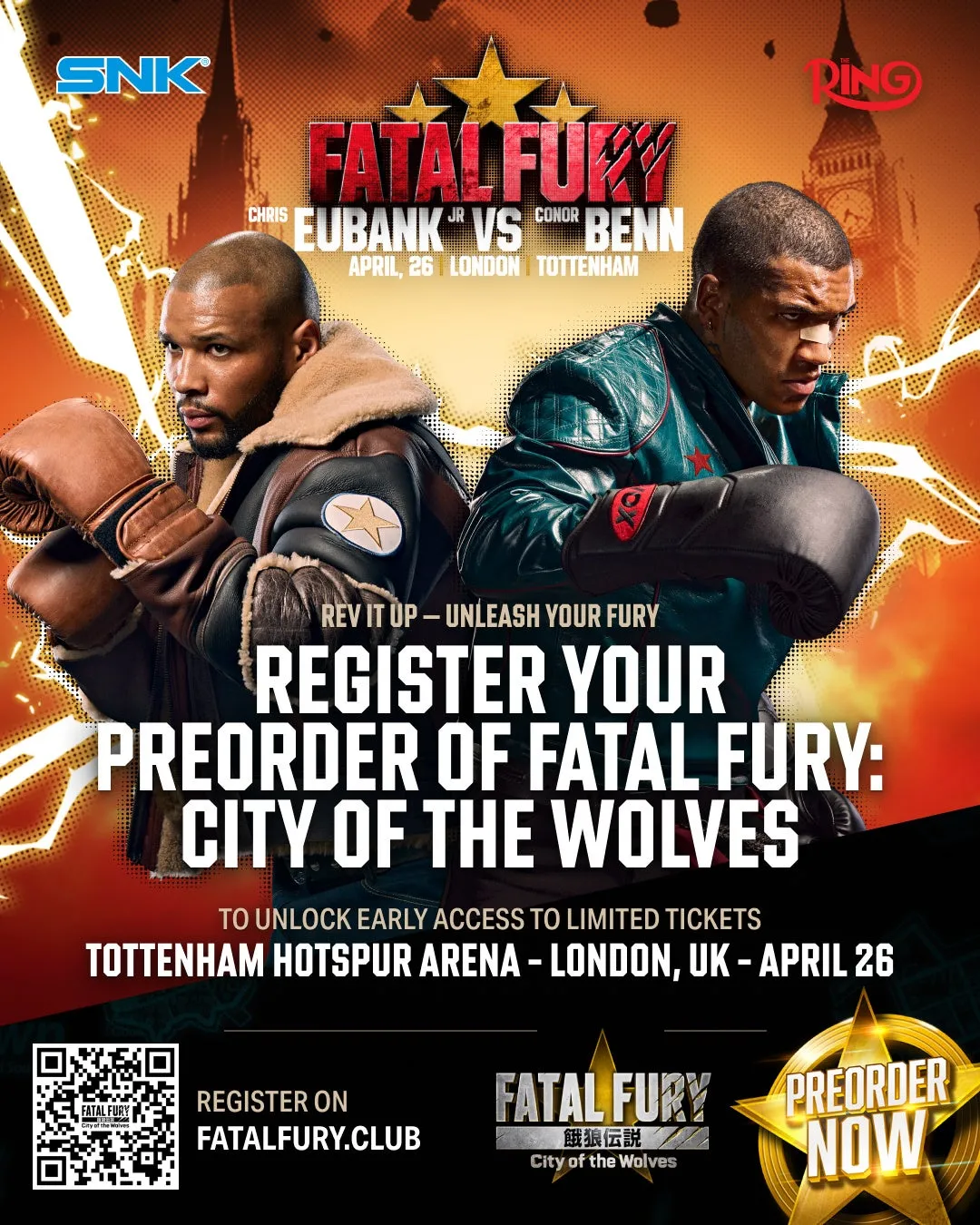 今回のコラボにより、ロンドンのトッテナム・ホットスパー・スタジアムで、特別なボクシングマッチ『FATAL FURY: City of the Wolves』が開催されます。イベントの日程は2025年4月26日の予定です。ボクシングと格闘ゲームのファンにはたまらないこの大会では、スリリングな対戦カードが用意されています。具体的には、著名なボクサーたちが揃い、以下の試合が行われる予定です。