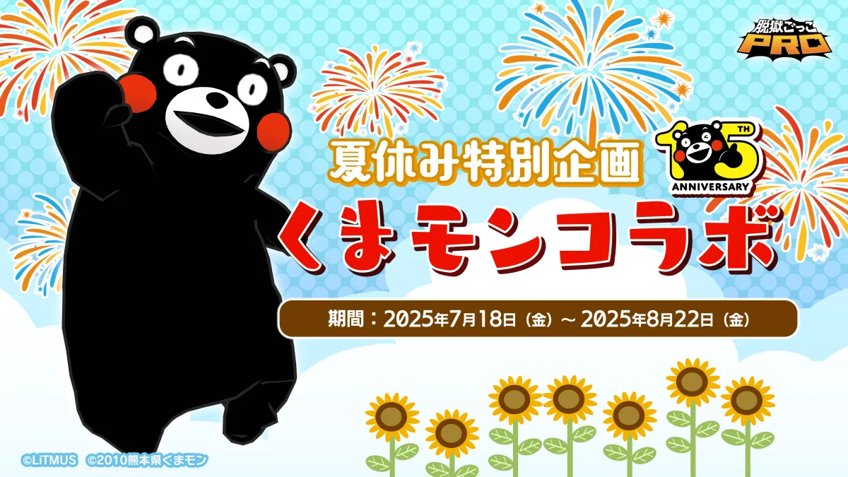 2025年の夏がやってくる。LiTMUS株式会社からリリースされる非対称対戦アクションゲーム『脱獄ごっこPRO』が、7月18日(金)から8月22日(金)まで、あの人気キャラクター「くまモン」とのコラボイベントを開催することが決定した。このイベントでは、新しいLGスキン「くまモン」が登場するガチャや、参加型のミッションが用意され、多くのプレイヤーが楽しめる内容となっている。