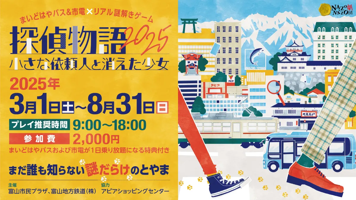 富山の街を舞台にした新たなリアル謎解きゲームの開催が発表されました。このイベントは、株式会社ハレガケが企画なもので、主催は富山市民プラザ、共催は富山地方鉄道。2025年3月1日から11月30日までの期間限定で、参加者は市内を走る「まいどはやバス」と富山地鉄の路面電車を利用しながら謎解きを楽しむことができます。