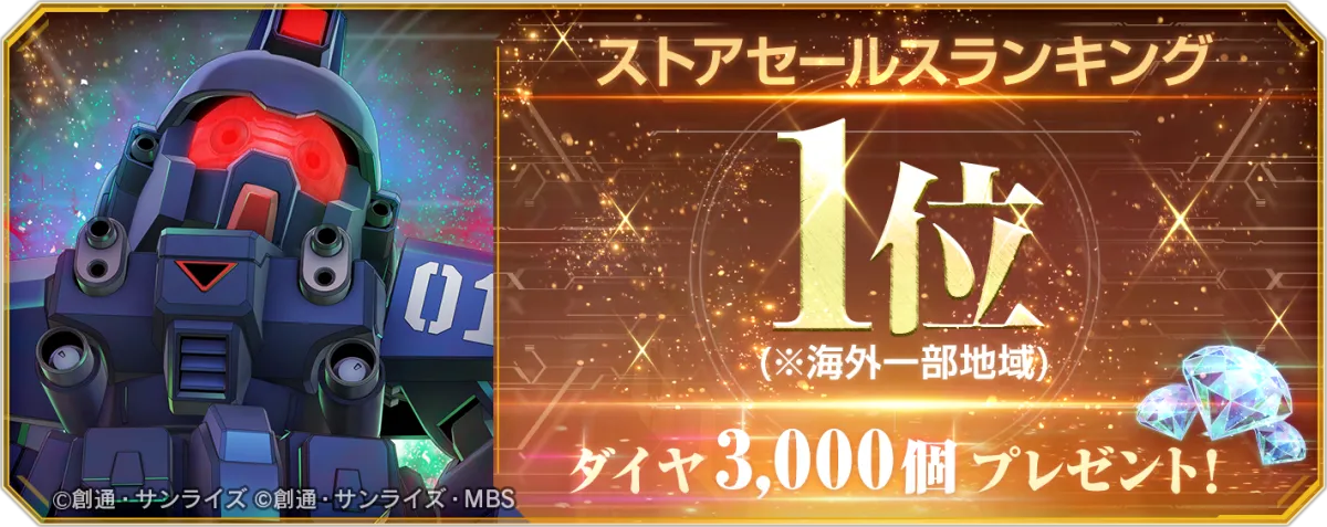 スマートフォン向けアプリ『SDガンダム ジージェネレーション エターナル』が、海外の一部地域においてストアセールスランキングで1位を達成しました。この素晴らしい成果を祝福し、バンダイナムコエンターテインメントからユーザー全員にダイヤ3,000個をプレゼントするキャンペーンが実施されることが発表されました。ダイヤはガシャ10回分にも相当するため、ゲームをより一層楽しむための強力なアイテムとなることでしょう。