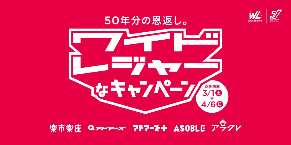 福岡県を拠点とする株式会社ワイドレジャーは、創業50周年を迎える2025年3月1日から、「ワイドレジャーなキャンペーン」を開催します。このキャンペーンは、日頃の感謝を込めて、同社の全店舗・サービスで一斉に実施され、抽選を楽しみながら豪華賞品を手に入れるチャンスを提供します。