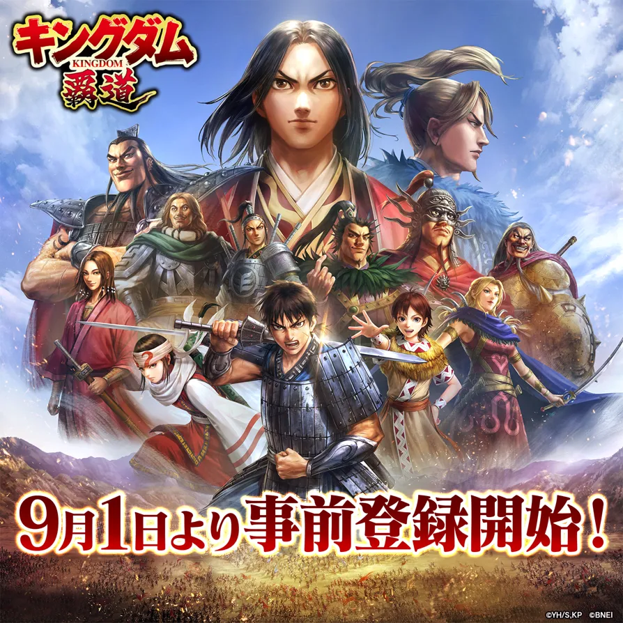 株式会社バンダイナムコエンターテインメントは、9月1日よりApp StoreおよびGoogle Play向けの新作アプリ「キングダム 覇道」の事前登録を開始しました。アニメ『キングダム』を基にしたこの戦略シミュレーションゲームは、プレイヤーが将軍となり、個性豊かな武将たちと共に戦場を攻略していく内容となっています。