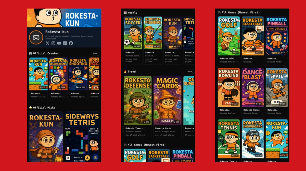ロケスタくんは、けんすう氏のSNSアイコンとして親しまれつつ、ファンメイドグッズやNFTコラボなど、さまざまな形で展開されています。この公式チャンネルは、公式ゲームとファンが生成したコンテンツ(UGC)を一堂に集め、ブランドとプレイヤーが共創できる環境を提供することを目的としています。