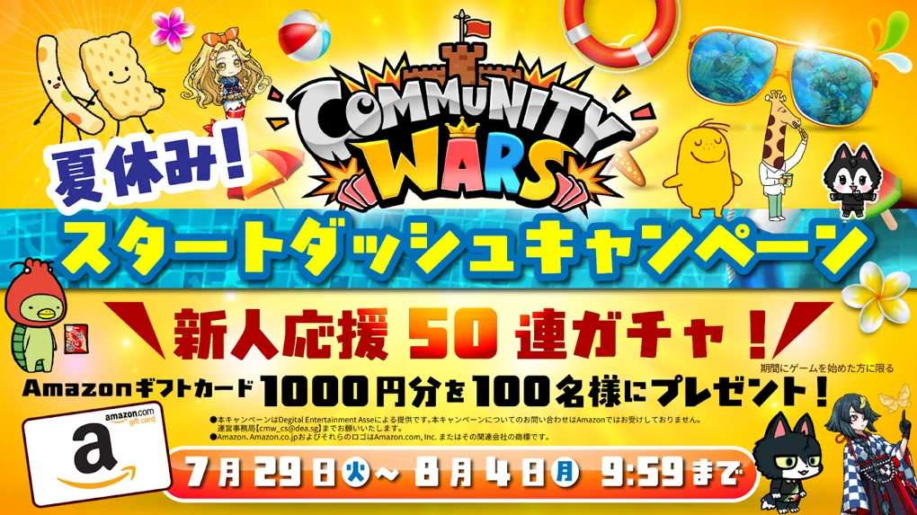 シンガポールを拠点とするDigital Entertainment Asset Pte. Ltd.(DEA)は、スマートフォン向け人気ゲーム『Community Wars』において、特別な夏休みキャンペーンを2025年7月29日(火)からスタートすると発表しました。このキャンペーンは、新規プレイヤーを対象とした特別企画で、現在実施中の『SNACK WARS powered by Calbee』コラボイベントとも連動しています。