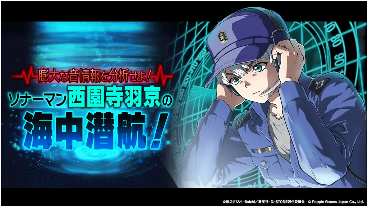 ポッピンゲームズジャパン株式会社が手がけるスマートフォン向けゲーム『Dr.STONE バトルクラフト』は、2023年7月11日から22日までの間、復刻イベント『[復刻]膨大な音情報を分析せよ!ソナーマン西園寺羽京の海中潜航!』を開催しています。このイベントでは、特別なステージをクリアすることで、貴重な報酬を手に入れるチャンスが広がっています。
