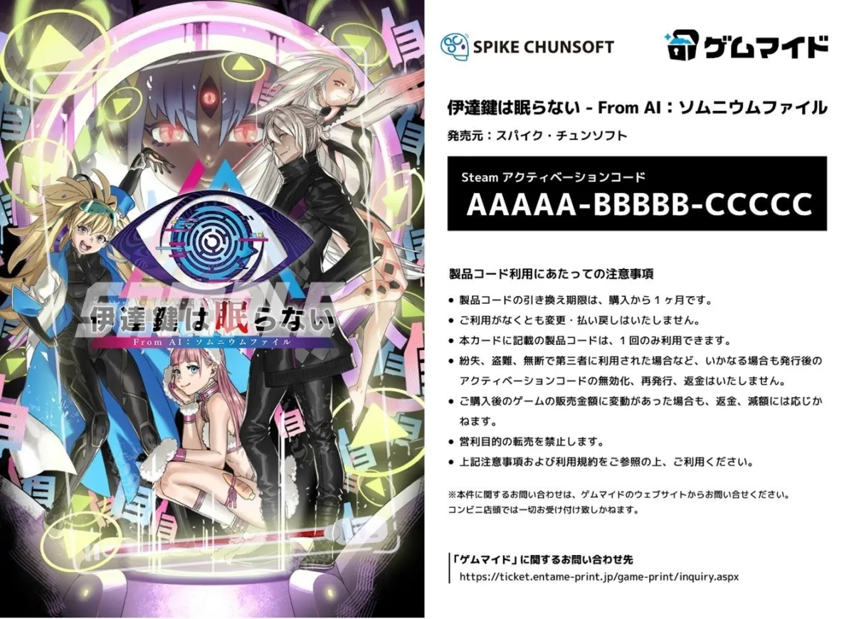 株式会社イードは、そのゲーム販売サービス「ゲムマイド」にて、人気のアドベンチャーゲーム『AI:ソムニウムファイル』シリーズから新たに3つの作品をリリースします。販売開始は7月25日16:00で、これにはシリーズ最新作の『伊達鍵は眠らない - From AI:ソムニウムファイル』、続編の『AI:ソムニウムファイル ニルヴァーナ イニシアチブ』、さらに初代作品の『AI:ソムニウムファイル』が含まれています。本記事では、これら3作品の詳細とブロマイドの特典について紹介します。