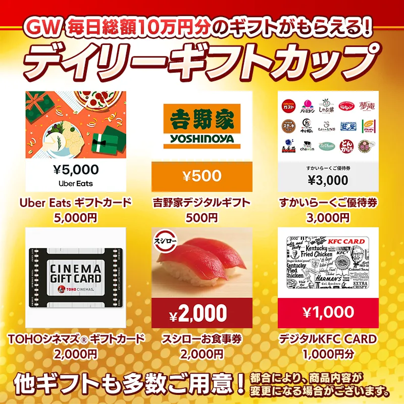「GWデイリーギフトカップ」では、毎日異なる日替わりのデジタルギフトが用意されており、参加者は全11種類から選ばれたブランドギフトを目指して熱戦を繰り広げることができます。トーナメントの賞品は、毎日約10万円相当のデジタルギフトが獲得できるチャンスがありますので、この機会をお見逃しなく!どなたでも無料で参加できるので、友人やご家族と一緒に、日々のスリルとともにポーカーの腕を試してみてはいかがでしょうか。