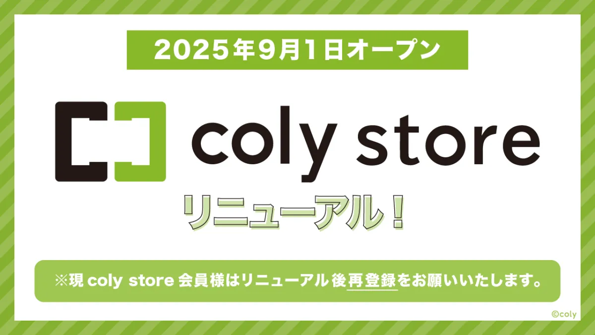 サイトのリニューアルに向けたメンテナンスのため数日間coly storeは一時停止予定です。正確な停止期間は後日案内されますが、一時的にサイトにアクセスできなくなるため、その点もご注意ください。