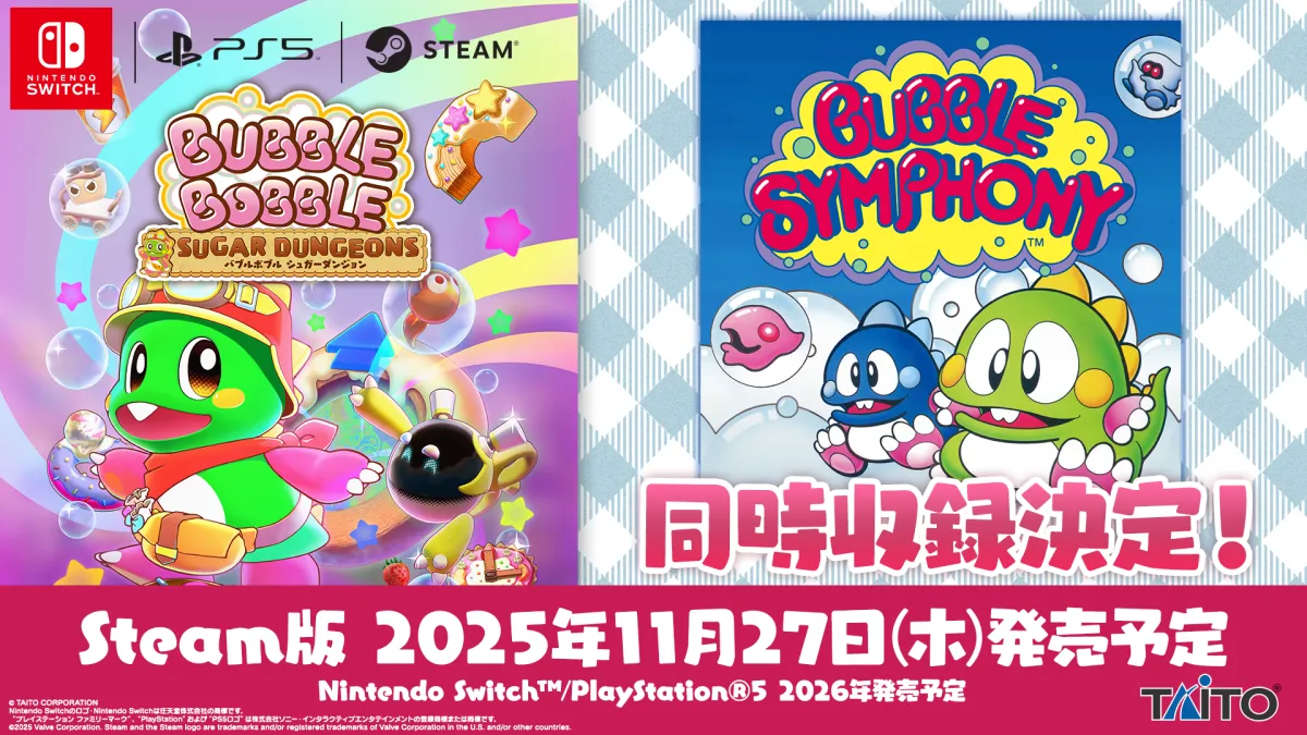 株式会社タイトーが、『バブルボブル』シリーズの最新作となる『バブルボブル シュガーダンジョン』のSteam版を2025年11月27日(木)にリリースすることを発表しました。この発表により、ファン待望の新作が遂に登場します。さらに、同時に収録される『バブルシンフォニー』の存在も注目されています。