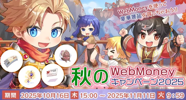 『ラグナロクオンライン』は、2025年10月16日(木)から約4週間にわたる「秋のWebMoneyキャンペーン2025」を実施します。期間中は、魅力的な特典が得られるチャンスです。この機会に、WebMoneyを使ってゲーム内アイテムやチケットを手に入れる絶好のチャンスが訪れます。開催されるキャンペーンの詳細を見ていきましょう。