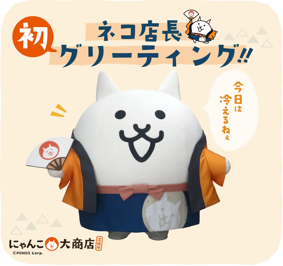 ネコ店長は、「にゃんこ大商店」の公式キャラクターで、将来自分の店を持ちたいと願う雇われ店長のにゃんこです。彼の日常を描いたWebマンガ「ネコテン」も連載されており、公式Xでファンに愛されています。