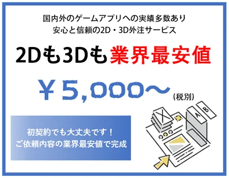 『SUHOゲームスタジオ』では、特にモバイルゲームに特化した2D・3Dデザイン制作を行っています。なんと、業界最安値の5,000円(税別)からサービスが利用できるというのが最大の魅力です。デザイン制作の外注における失敗として、品質の低さや納期の遅れがよく挙げられますが、当社は優秀な海外開発リソースを活用しつつ、日本の品質管理を導入することで、この課題をクリアしました。