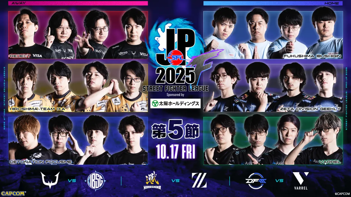 10月17日(金)、熱烈なファンの熱気に包まれた会場で行われた「ストリートファイターリーグ: Pro-JP 2025 Division F 第5節」。この日は、各チームのエースたちが投入され、全大将戦で白熱した戦いが繰り広げられました。