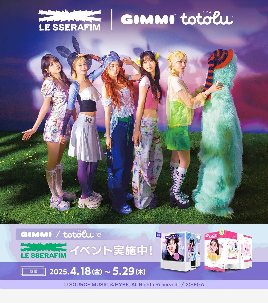 セガグループの株式会社セガ フェイブが、新たにリリースしたプリクラ機『GIMMI(ギミ)』と『totolu(トトル)』において、人気ガールグループ「LE SSERAFIM」とのコラボイベントを実施します。イベントは2025年4月18日から5月29日までの期間限定で、全国の設置店舗で体験できます。