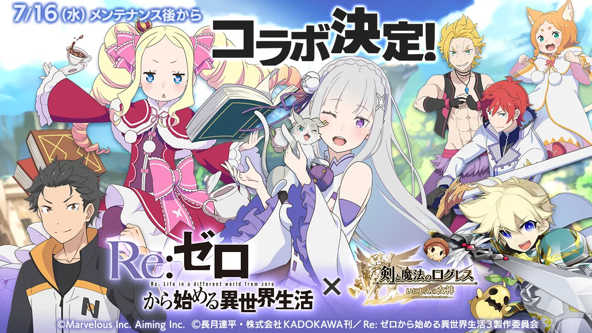 株式会社マーベラスが展開するスマートフォン向け本格オンラインRPG『剣と魔法のログレス いにしえの女神』において、2025年7月16日より人気TVアニメ「Re:ゼロから始める異世界生活」とのコラボレーションが決定しました。新たなキャラクターたちがゲームに登場し、ファン待望のイベントが開催されることが発表されました。