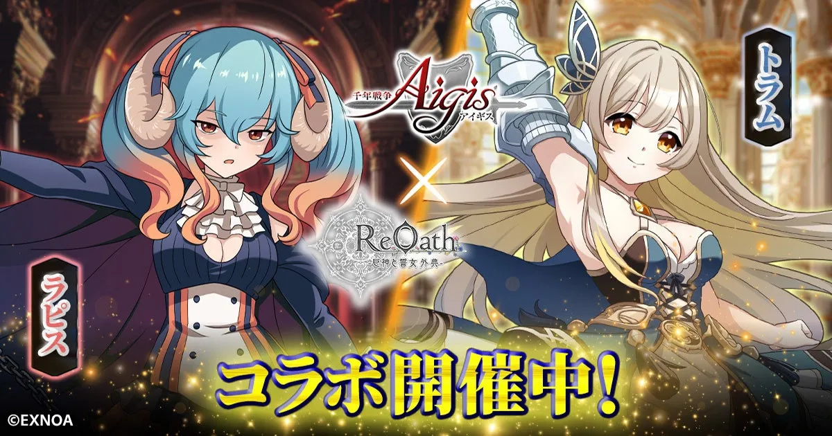 合同会社EXNOAが運営する『ReOath-巨神と誓女 外典-』が、2023年4月17日から『千年戦争アイギス』とのコラボイベントを開始しました。このコラボでは、特別なキャラクターやユニークな報酬が多数登場します。コラボ期間中にしか手に入らないアイテムやキャラのお得な情報を一挙にご紹介します。