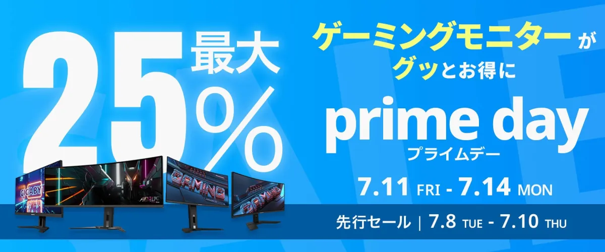 2025年7月11日(金)から14日(月)まで、Amazonで開催されるプライムデーに合わせ、GIGABYTEが特別なセールを実施します。このセールでは、ゲーミングモニター6製品が最大25%オフとなるお得なチャンスです。