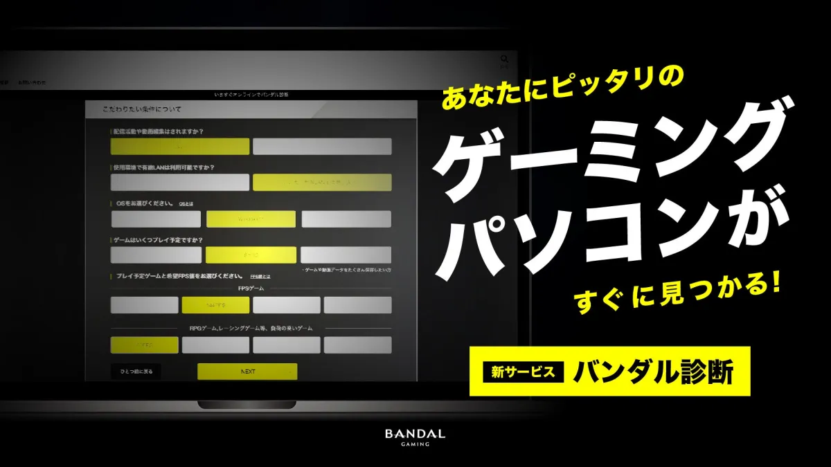 ゲーミングPCに興味があるけど、どれを選べば良いのか悩んでいる方々に朗報です。BANDALが新たに発表した「バンダル診断」は、ユーザーが手軽に自分に最適なゲーミングPCを見つけるためのサービスです。この機能は、初めてゲーミングPCを購入する人々や、どれを選んだらいいか不安を抱える人たちをターゲットにしています。