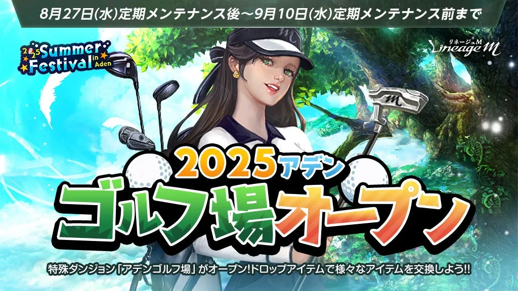 さらに、「2025アデンゴルフ場オープン」に合わせたフォロー&リポストキャンペーンが2025年8月27日から9月9日まで行われます。このキャンペーンでは、リネージュMの公式Xアカウントをフォローし、指定されたポストをリポストすることで「[聖物カード]ゴルフボール」が抽選で1名に当たります。参加することで、イベントをより一層楽しむことができますね。