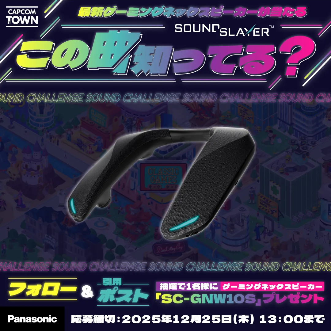 2025年12月17日(水)から、カプコンタウンの公式Xアカウント(@capcomtown)にて一大クイズキャンペーンが開催されます。なんと抽選でたった1名様に、パナソニックのゲーミングネックスピーカー「SC-GNW10S」をプレゼント!この機会をお見逃しなく!