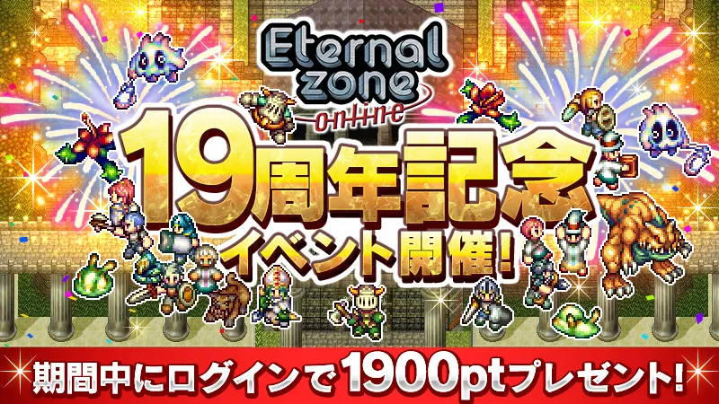 『エターナルゾーンオンライン』が19年間にわたって愛されてきたことに感謝の気持ちを込め、今回のイベントをご用意しました。これからも多くのプレイヤーに楽しんでいただけるよう、さまざまな工夫を凝らしていきます。プレイヤーのみなさんと一緒にこの記念すべき時間を楽しみましょう!