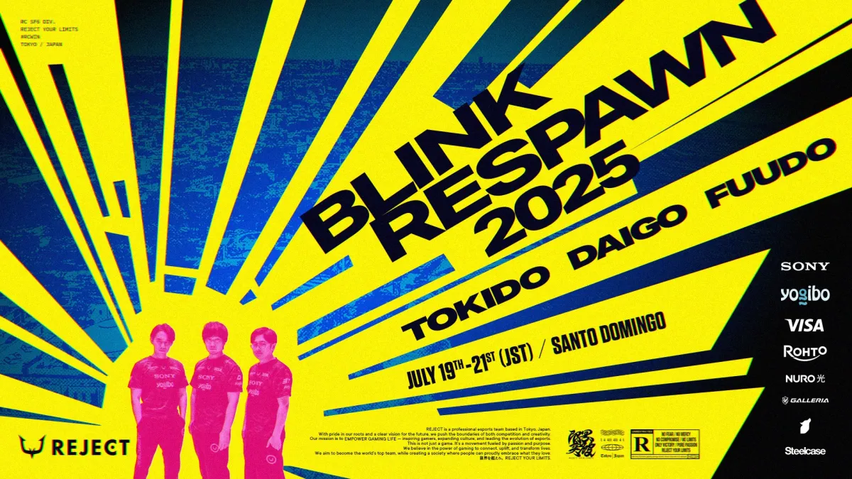 『Blink Respawn 2025』は、ドミニカ共和国で開催される格闘ゲームの大会です。この地は、世界的な格闘ゲーム選手のMenaRDを輩出した場所としても有名で、当地の格闘ゲームコミュニティは非常に活発です。大会はこれまでCAPCOM Pro Tour指定大会として位置づけられ、今回も多くのトッププレイヤーたちが集結します。REJECTからは、STREET FIGHTER部門のときど、ウメハラ、ふ~どの3選手が参加予定です。