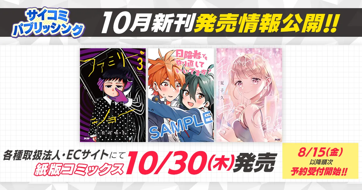 Cygamesが提供する「サイコミ」から、期待の新作3タイトルが2025年8月15日から順次予約受付を開始するとの情報が入ってきました。この中には、人気のスクールライフラブコメディ『日陰者でもやり直していいですか?』の第3巻が含まれています。近年、熾烈な競争が繰り広げられているマンガ市場において、サイコミの新作がどのように評価されるのか注目です。