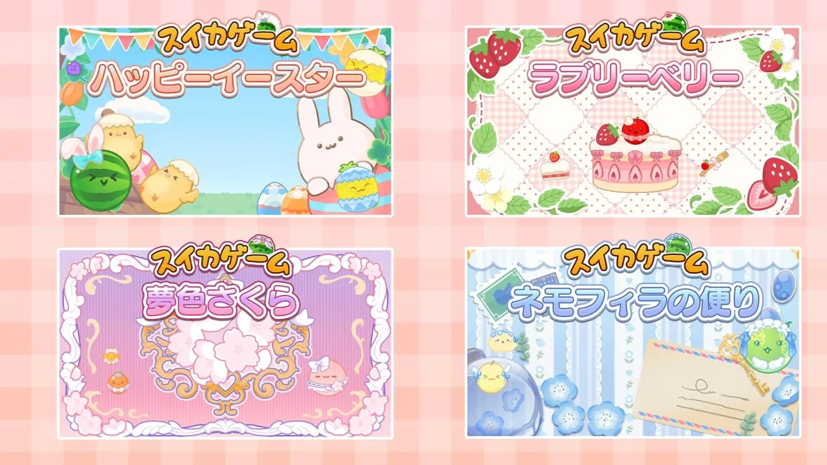 「スイカゲーム®」のNintendo Switch版に、春をテーマにした新しいスキンが登場しました!これまで以上に可愛さが満載の新デザインは、プレイヤーたちに鮮やかな春の彩りを加えます。4種類の新作スキンは、それぞれ独自の魅力を持ち、春の雰囲気をたっぷりと感じさせてくれます。それぞれのスキンの詳細を見ていきましょう。