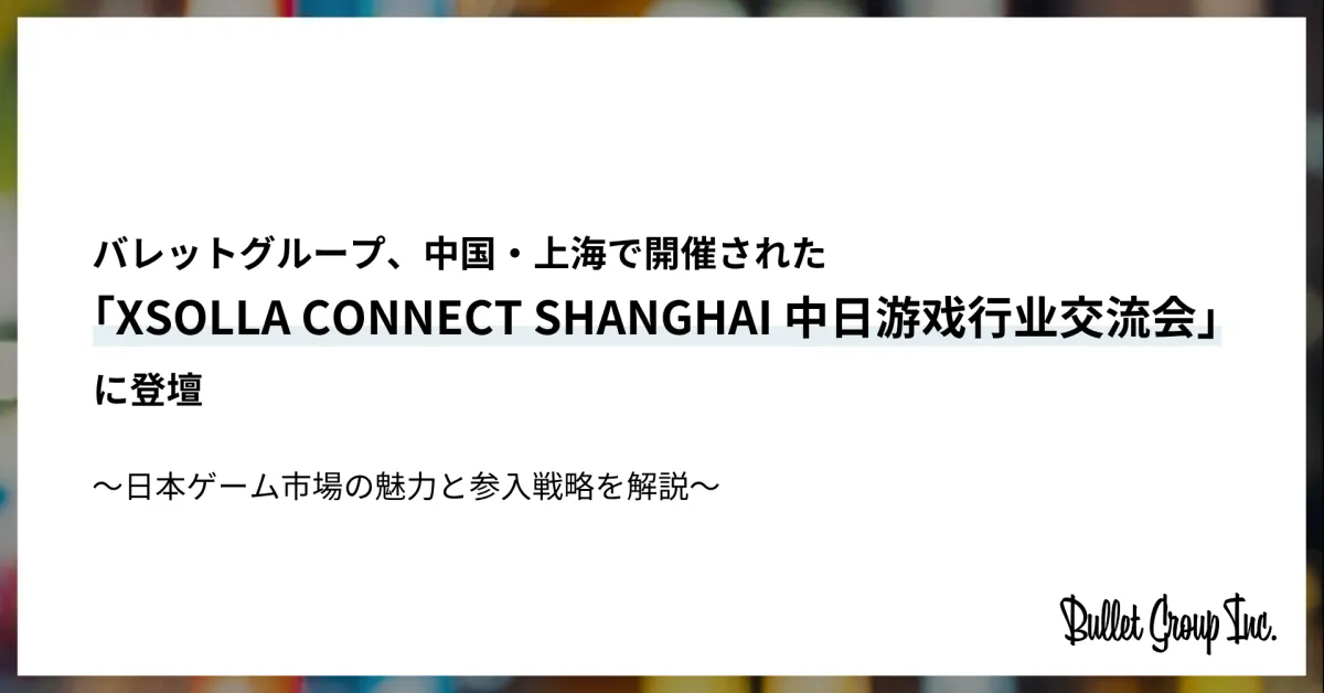 2025年5月15日、中国・上海にて「XSOLLA CONNECT SHANGHAI 中日游戏行业交流会」が開催され、バレットグループ株式会社の平田尚輝 General Managerが登壇しました。このイベントは中国のゲーム開発者が日本市場に進出する際の貴重な情報提供の場となりました。