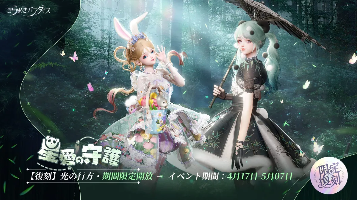 次世代ガールズドリームRPG『きらめきパラダイス』が、ファン待望のイベント『星愛の守護』の復刻を発表しました。イベントは4月17日(木)から開始され、同日より限定星5セットのコーデ「イリピカの心」と「眠りのゴロゴロ」が手に入るチャンスがあります。また、4月24日からは注目の長期ガチャ『おとぎの箱』が88日間にわたって開催されるので、要チェックです!