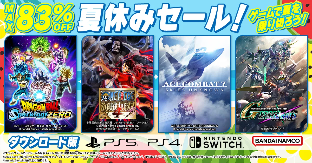 株式会社バンダイナムコエンターテインメントが、2025年7月29日から8月13日までの期間限定で大規模なダウンロード版ゲームセールを実施しています。このセールでは、人気のあるゲームが最大83%の割引価格で手に入るチャンスです。