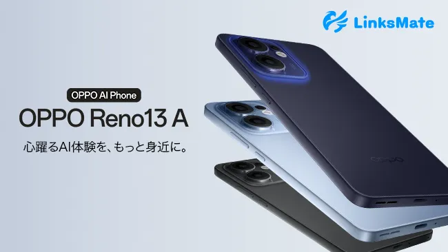 2025年7月31日、株式会社LogicLinksが提供するMVNOサービス「LinksMate」にて、新たに「OPPO Reno13 A」が販売されることが発表されました。価格は44,800円(税込)で、Androidスマートフォンの最新モデルとなります。この新端末は、ゲームプレイヤーやコンテンツを楽しむユーザーに向けて特にデザインされた製品です。