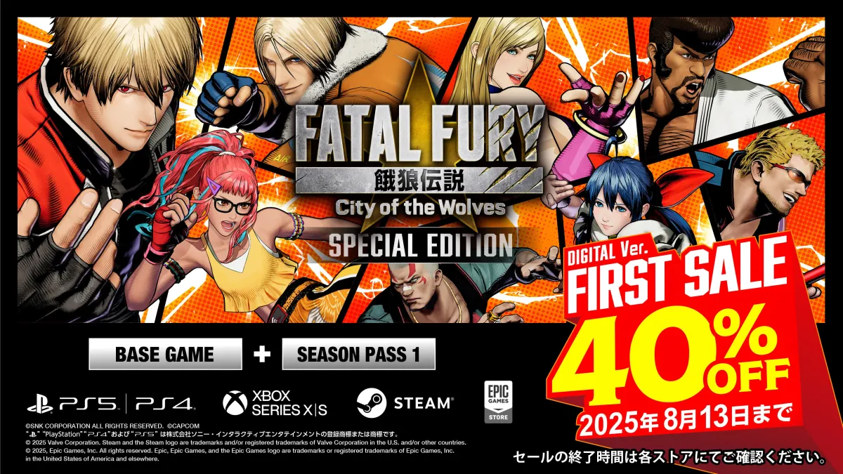 株式会社SNKが手掛ける期待の新作、対戦格闘ゲーム『餓狼伝説 City of the Wolves』が、デジタル版の初セールを開始しました。このセールは2025年8月13日まで、すべてのプラットフォームで開催される予定です。