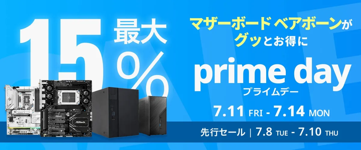 2025年7月11日から7月14日まで、そしてその前の7月8日から始まるプライムデー先行セールで、特にゲーム愛好者やPCビルダーにとって注目すべきニュースがあります。ASRock社の人気製品が、この期間中に最大15%オフとなるセールを実施します!このセールは、最新のIntelやAMDチップセットを搭載したマザーボードや、さまざまな用途に適したワークステーション向け製品、さらには超コンパクトなベアボーンシステムにまで広がります。