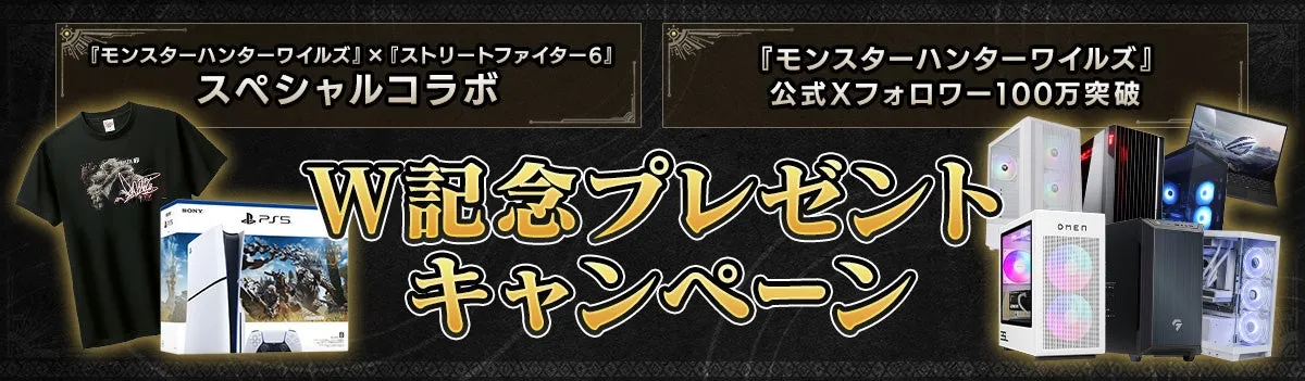 このコラボの発表に加え、『モンスターハンターワイルズ』公式Xアカウントのフォロワー数がついに100万人を突破しました!これを記念して、新たなプレゼントキャンペーンが開催されます。キャンペーンは段階的にポストされ、参加者には豪華賞品が当たるチャンスが待っています。