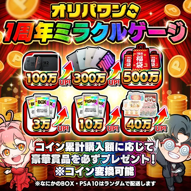 ゲームファンに嬉しいニュースが舞い込んできました!オンラインオリパサイト「オリパワン」は、開設から1周年を迎えるにあたり、感謝の意を込めた特別イベントを開催中です。2025年7月にスタートして以来、多くのユーザーに支えられた「オリパワン」がついにクライマックスを迎えるのです。