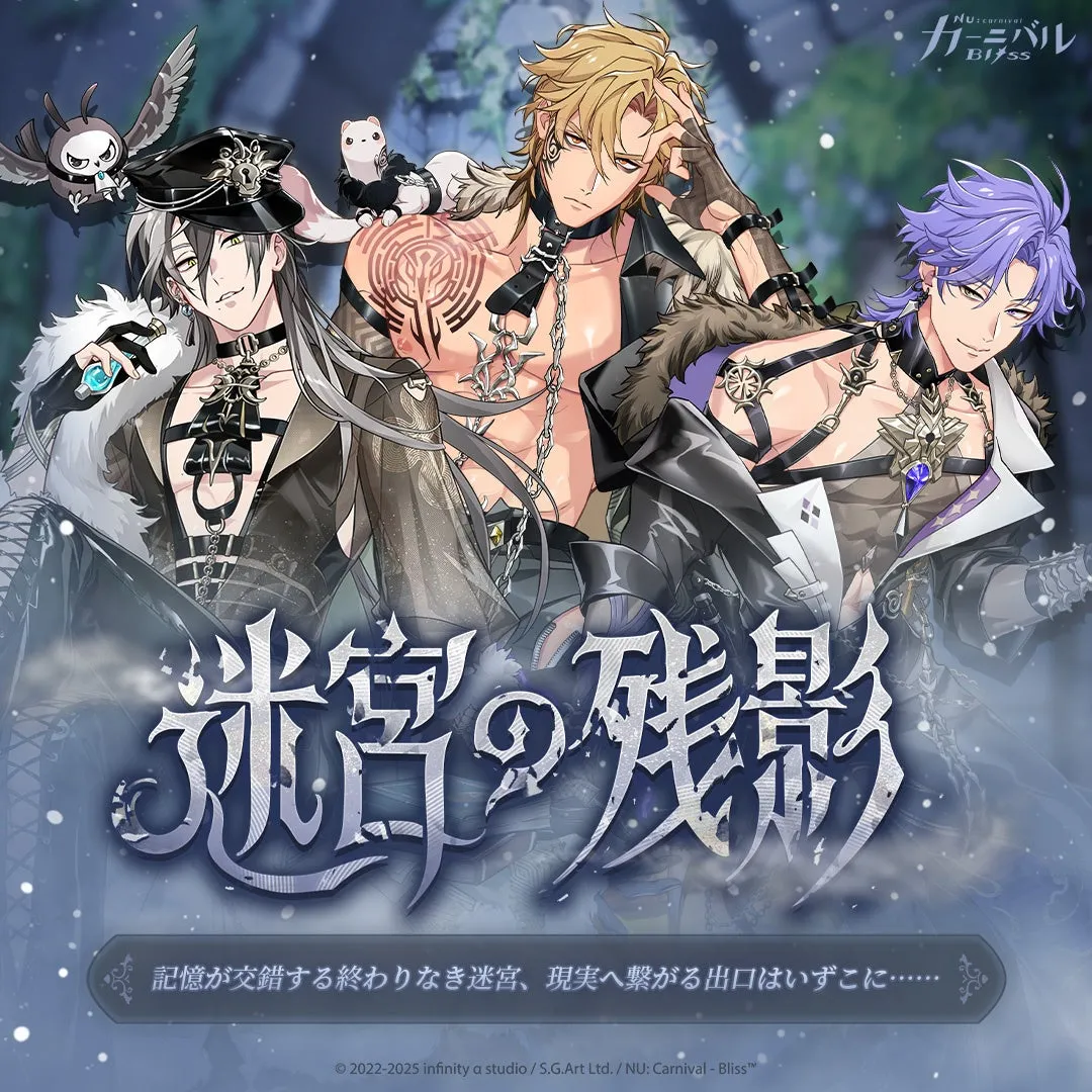 本日、人気スマホBLゲーム『NU: カーニバル - Bliss』が新たな挑戦を提供するイベント「迷宮の残影」を開始しました。この期間限定イベントでは、プレイヤーはエイト、ケシー、玖夜、レイの4名のキャラクターと共に、複雑に絡み合った迷宮を探検し、記憶の扉をくぐり抜けながら数々の試練に立ち向かいます。